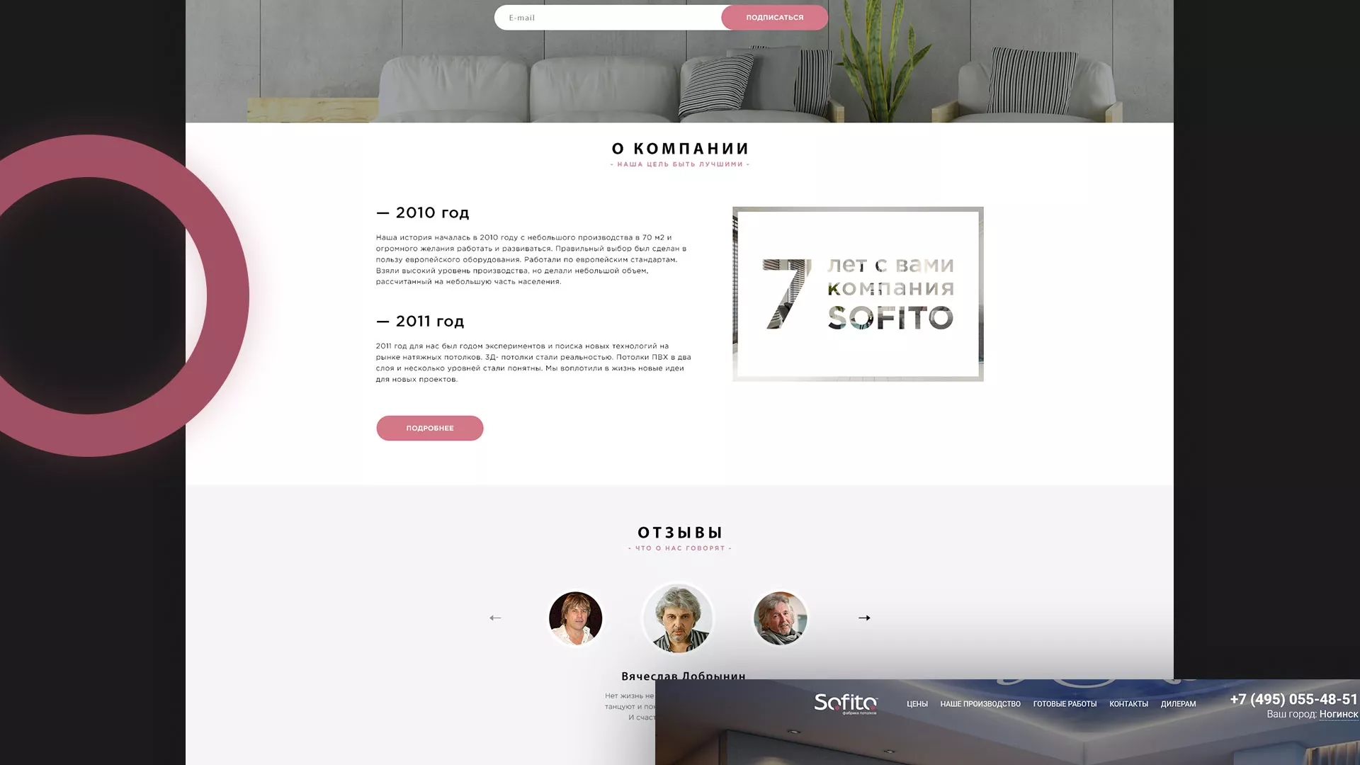 Достояние компании «Софито» — это люди. Фабрика потолков «Софито» — это команда профессионалов, проверенная временем! На счету компании многие эксклюзивные реализованные проекты в Щучье с использованием натяжных потолков и других интерьерных решений.
